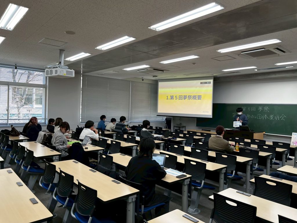 2つ目は参加団体説明会を行いました!第5回夢祭に参加してくれる団体は、ブース団体とステージ団体を合わせて全19団体です!