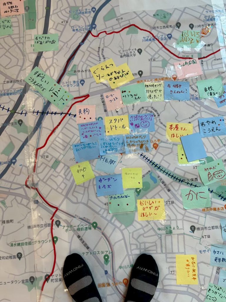 大きな地図をみんなで囲み、おすすめスポットや地域の魅力をどんどん書き込んでいく企画です!
