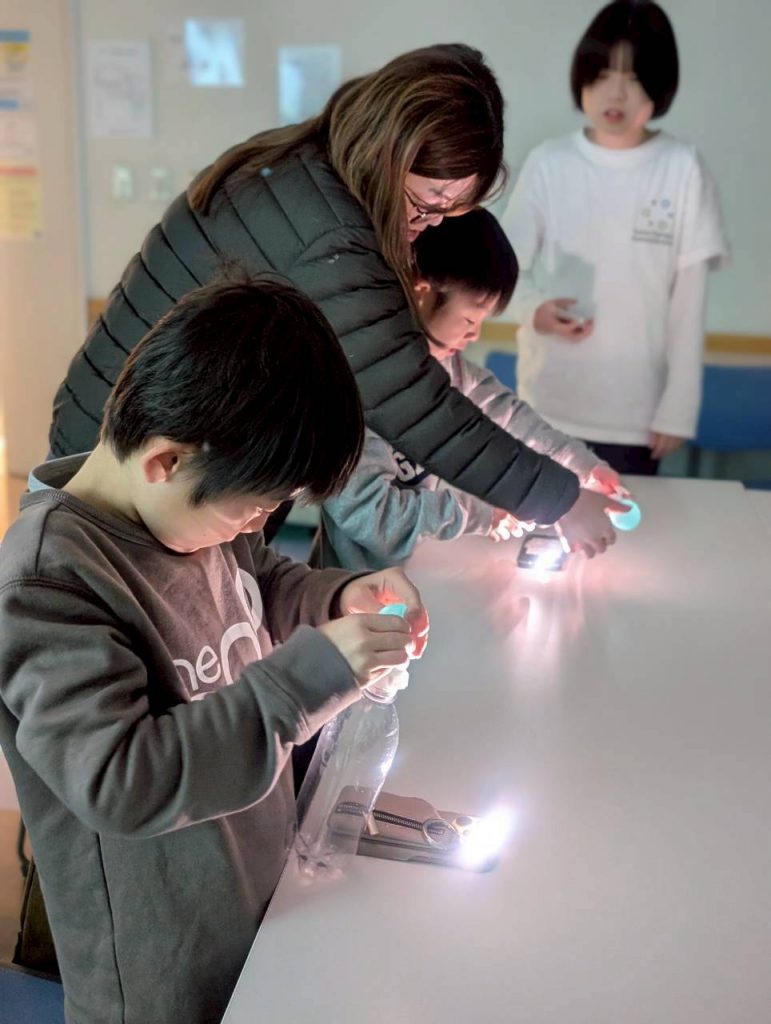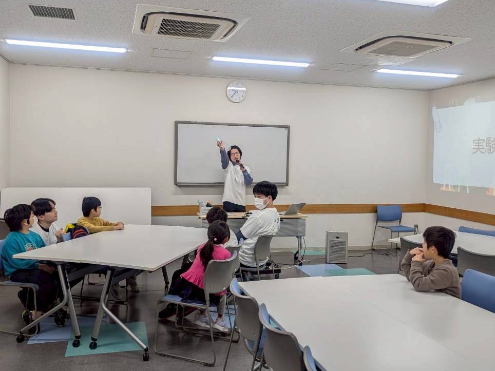 もちろん、ただ楽しむだけではありません! 「どうしてペットボトルの中に雲ができるの?」「どうして虹色に見えるの?」といった、科学の原理についてのお勉強もしっかり行いましたよ!みんな真剣にお話を聞いてくれました!!学校でもお勉強頑張ってね!!